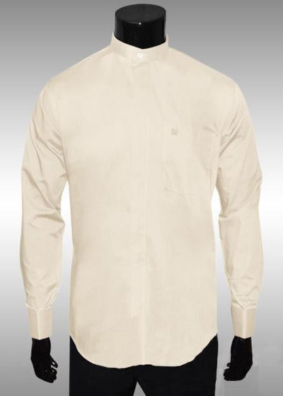 Long Sleeve Banded Collar Covered Buttons Convertible Cuff 65% Polyester / 35% Cotton Available color: Ivory