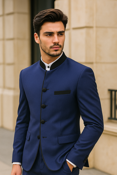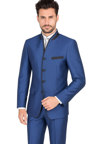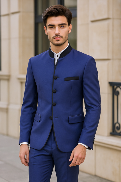 Mandarin Collar Tuxedo - Mandarin Tuxedo - No Collar Suit - Blue Suit
