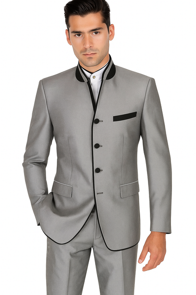 Mandarin Collar Regular Length Slim Fit 4 Button Flat Front Pants Final Sale Item. No Returns Color: Gray SKU#JA7605