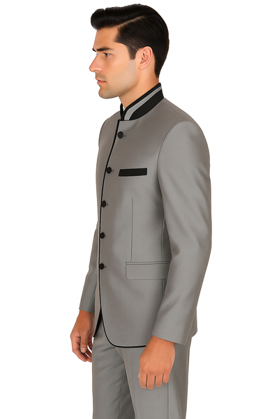 View full detailsSuit Jacket: Black color fabric Mandarin banded collar Eight button front closure Nehru Style Suit back vent coat style Self-Flap pocket one on eac...