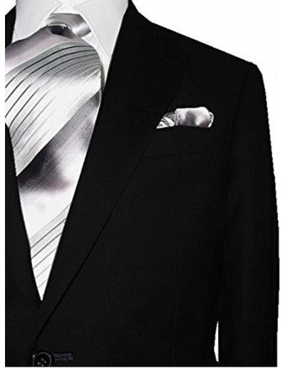Single Breasted 2 Button Notch Lapel Modern Fit Suits 1 Besom Chest Pocket Flap Front Pockets Dual Side Vents Flat Front Pants No Pleats Color: Bla...