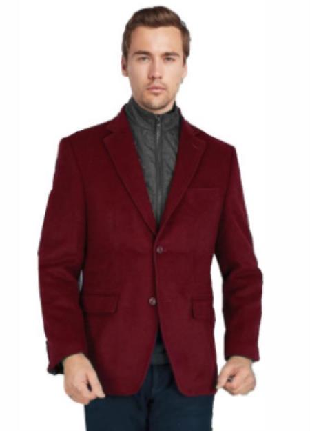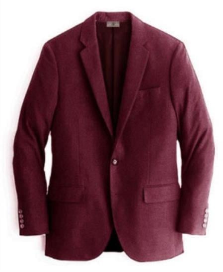 View full detailsTwo Button Single Breasted Notch Lapel One Chest Pocket Two Front Flap Pockets Dual Side Vent Jacket Color: Burgundy SKU#JA2222