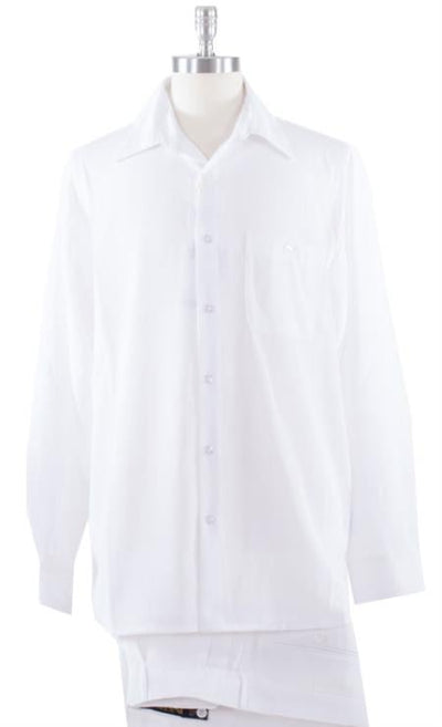 Short Sleeve Shirt 2 Piece Walking Suit Solid Pant Color: White Pleated Pants SKU#SM510