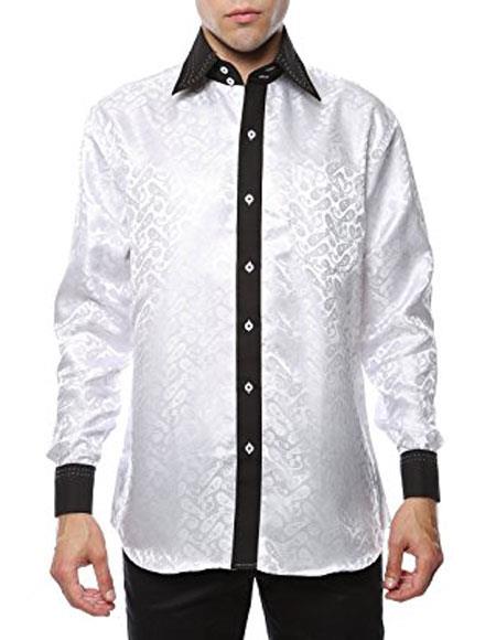 Shiny Satin Floral Spread Collar Paisley Dress Club Clubbing Clubwear Shirts Flashy Stage Colored White-Black Two Toned Woven Casual Men's Dress Shirt