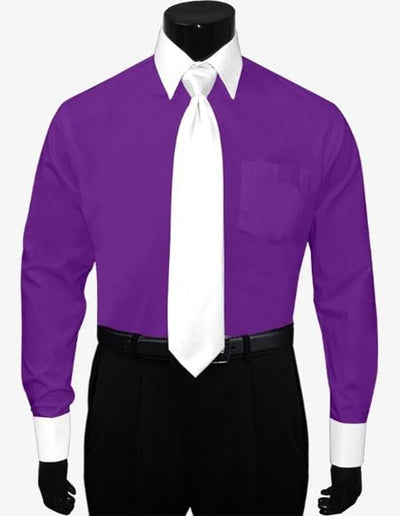 French Cuff Dress Shirt Starch White Collar Point Collar Cuff Links Color: Purple SKU#JA4149