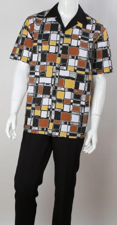 Standard Length Short Sleeve Button Closure Collar Pleated Pants Cuffed 34 inch Inseam 20'' Wide Leg Pant 100% Fine Polyester Color: Black