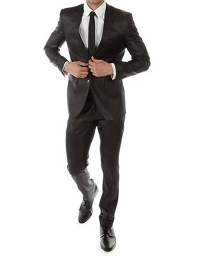 1 Button Closure Single Breasted Peak Lapel Slim Fit Flat Front Pant Flap Front Pockets One Chest Pocket Color: Black SKU#JA2302