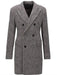 • Peak lapel styling and has sharp edges pointed towards the shoulders.