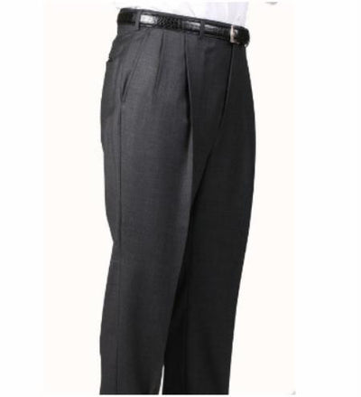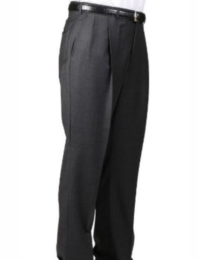 Pleated front 65% Polyester 35% Merino Washable Pants are unhemmed to allow for custom fitting. Color: Charcoal SKU#JA56927