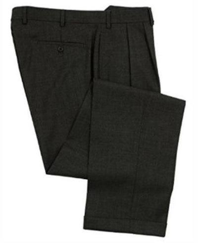 Pleated front 55% Dacron Polyester 45% Worsted Pants are unhemmed to allow for custom fitting. Color: Charcoal SKU#JA56942