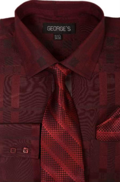 Point(Straight) Collar 60% Cotton 40% Polyster Standard Cuff Classic Fit Geometric Pattern Color: Burgundy