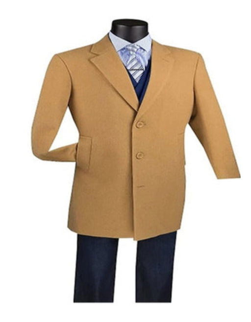 Two Button Notch Lapel One Chest Pocket Two Front Welt Pockets Center Back Vent Material : 80% Polyester, 18% Viscose, 2% Spandex Color: Camel SK...
