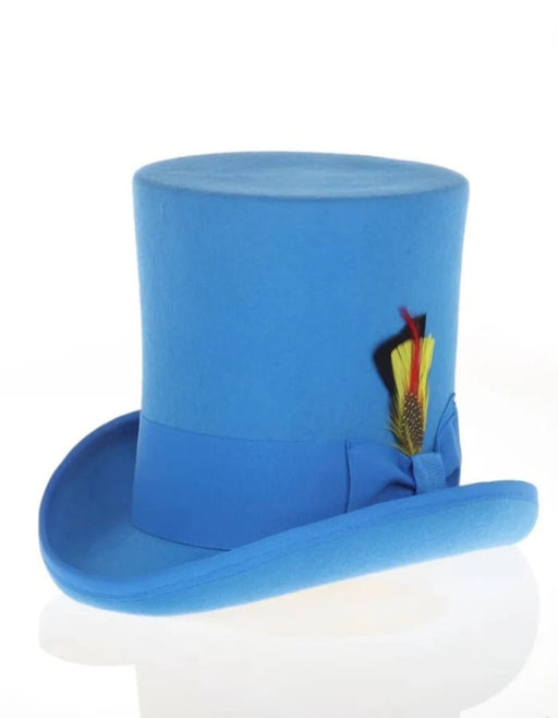 100% Wool Felt Reinforced Brim & Crown for ultimate longevity Grosgrain Ribbon Crown: 7 inches high Brim: 2 inches Color: Turquoise