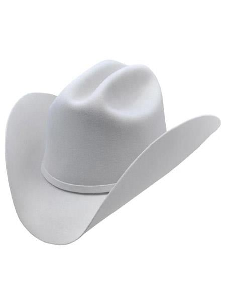 View full details100X Beaver Felt 4 1/2" Crown Available Brim 3 1/2" or 4" Self Bound Hatband Leather Sweatband Classic Cattleman Crease Crown Color: White SKU#JA4324