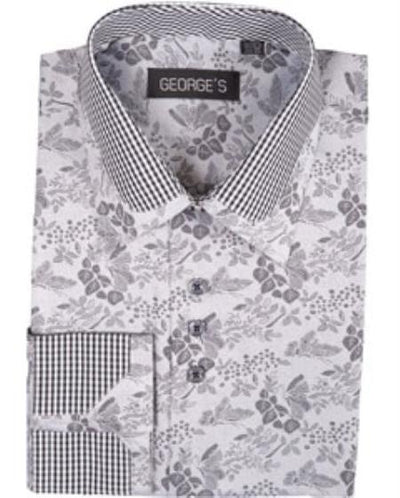 brown floral pattern design fashion shirt double button cuff fancy double style collar with detail design Made of Cotton/Poly blend SKU#SSGQ19
