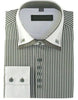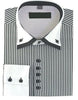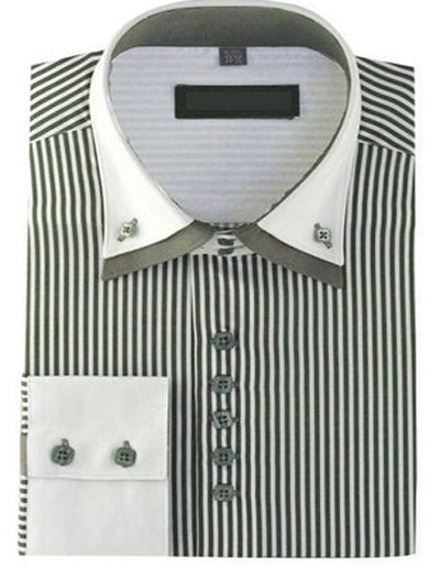 Five Button Front Stripe High Collar Fashion Shirts Black Stripe Double Button Front Made of Cotton/Poly blend Color: Grey SKU#JA3156