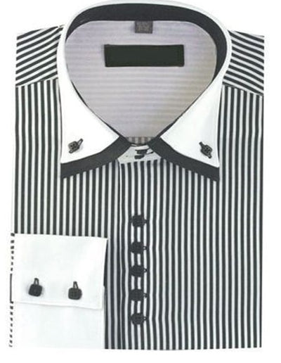 High collar fashion shirts Made of Cotton/Poly blend easy care fabric Double button cuff Fancy high collar with solid trim Color: Black SKU#JA5796