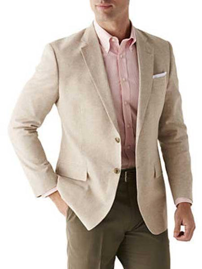 2 Button Notch Lapel Long Sleeves Single Breasted Blazer Classic Fit Side Vent Flap Front Pockets One Chest Pocket Color: Sand SKU#KA54258