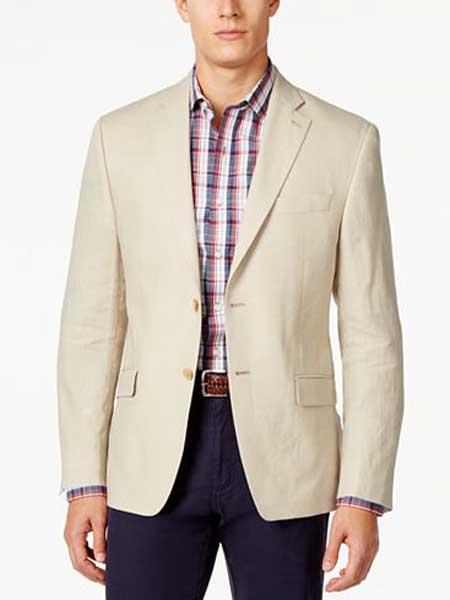 2 Buttons Cheap Priced Designer Fashion Dress Casual Blazer On Sale Notch Lapel One Chest Pocket Front Flap Pockets Material : Linen Color : Tan SK...