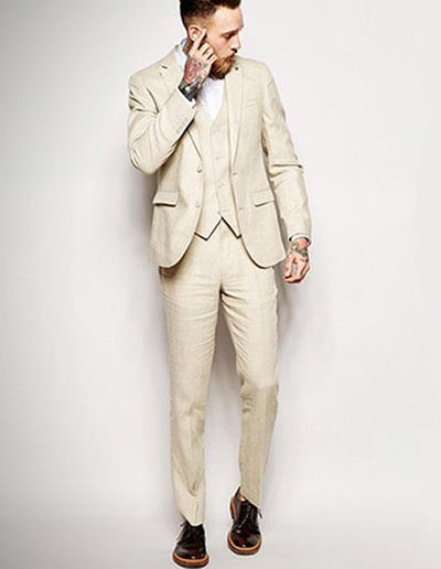 Two Button Notch Lapel Single Breasted One Chest Pocket Flap Front Pockets Four Button Cuff Material: Linen Color: Beige