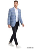 3 Button Notch Lapel Single Breasted Ticket Pocket Plaid Pattern One Chest Pocket Two Flap Front Pockets Color: Blue Plaid