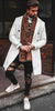 3 Button Single Breasted Peak Lapel Removable Fur Collar Adjustable Belt Coat Color: Ivory
