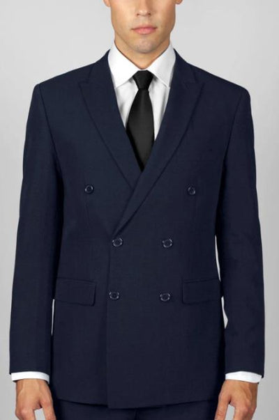 6 Button Double Breasted Peak Lapel Ticket Pocket One Chest Pocket Two Flap Front Pocket Color: Navy Blue SKU#JA54125