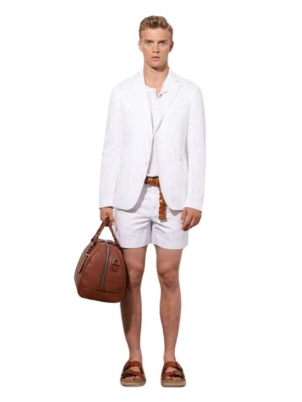 View full detailsCotton stretch short Button closure with zip fly Secure zipper pocket Front off-seam pockets Rear welt pockets Detailed Leg Cuffs Color: Snow SKU#J...