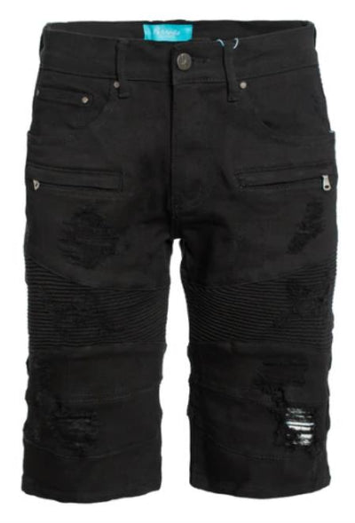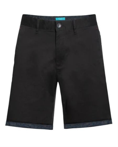 Cotton stretch short Button closure with zip fly Secure zipper pocket Front off-seam pockets Rear welt pockets Detailed Leg Cuffs Color: Black SKU#...