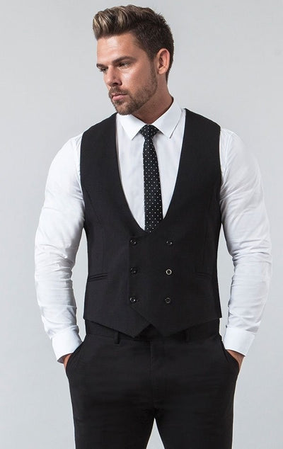 6 Button Double Breasted Jetted Pockets Slim Fit Color: Black SKU#SK522