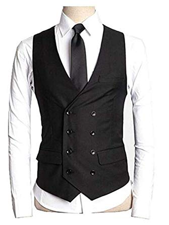 Front Closure with Five Matching 5 Buttons men's "V" Neck Fashion Single Breasted Pocket One on Each Side Buckle Adjustment at the Back Bow Tie wit...
