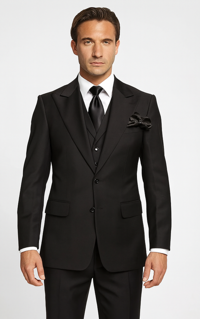 View full detailsSlim-fit Suit With Vest Single Breast Jacket With One Button Peak Lapel With Pick Stitch 2 Side vent Vest With U Cut Style Flat Front Pants With Ha...