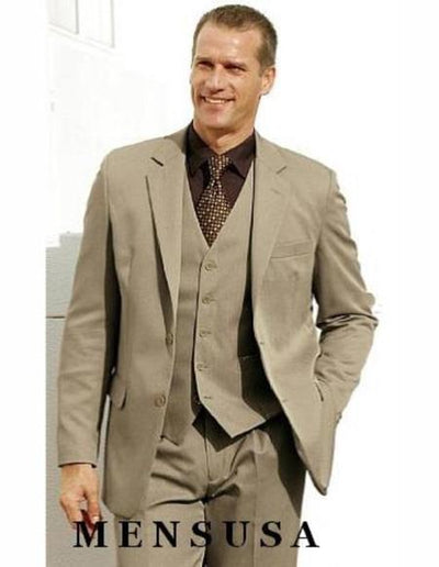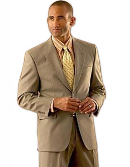 Notched Lapel 2 Front Packets, 1 Besom Chest Pocket Zippered Fly With Buttoned Waist Tab Color: Solid Beige SKU#SW923