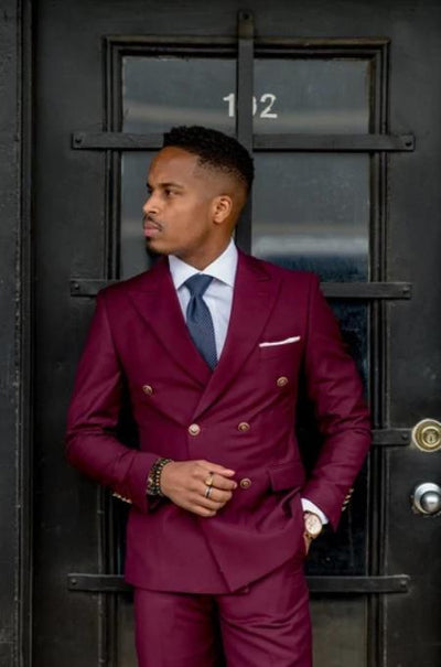 Burgundy Tuxedo Velvet Tuxedo - Velvet Suits Double Breasted Tuxedo Double Breasted Suits Slim Fit Color: Burgundy
