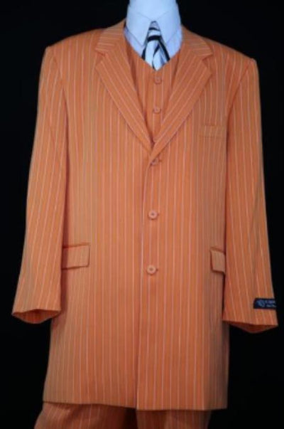 View full detailsMen's Razor Stripe Orange Zoot Suit 3 Button Fastening Notch Lapel Single Breasted Flap Pocket One Single Chest Pocket 3pc Shirt And Pants Razor St...