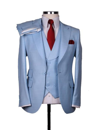 1 Button Peak Lapel Single Breasted Ticket Pocket One Chest Pocket Two Flap Front Pockets Color: Denim Blue