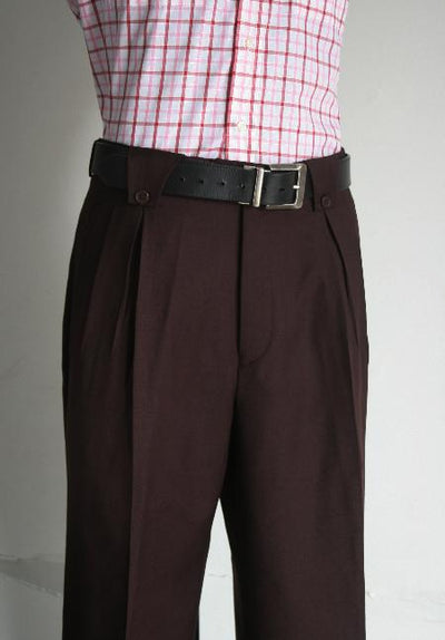Mens Pleated Dress Pants Pleated front Brown 65% Polyester 35% Merino Washable pants are unhemmed to allow for custom fitting.
