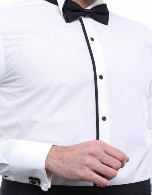 Slim Fit Tuxedo Shirt With Ruffled Center, Removable Buttons Also Available In White & Off White