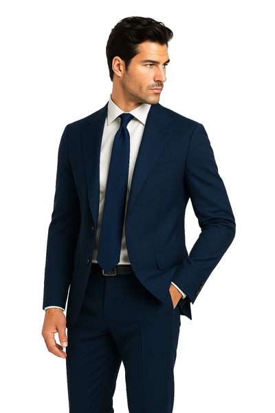 View full detailsThe Rossiman Men’s Navy Wool Suit with Baggy Pleated Pants is a sophisticated blend of heritage tailoring and modern versatility. Made from 100% pr...