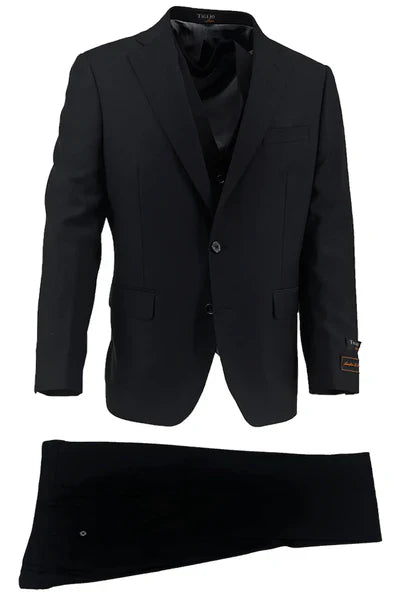 View full detailsModern Fit Suit 2 Piece includes Blazer and Pants Notch Lapel, 2 Buttons, Side Vents Half Canvas Construction Bemberg Lining Flat Front Pants, Zi...