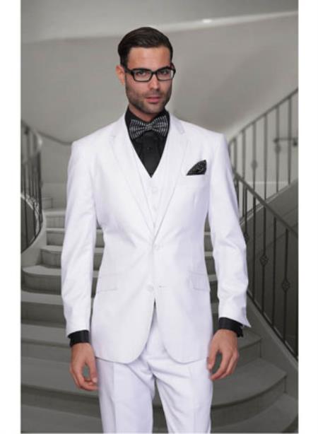 View full detailsSingle Breasted 1 Button Black Shawl Lapel Flat Front Pants One Chest Pocket Modern Fit Suits Vested Suit Color: White SKU#GD608