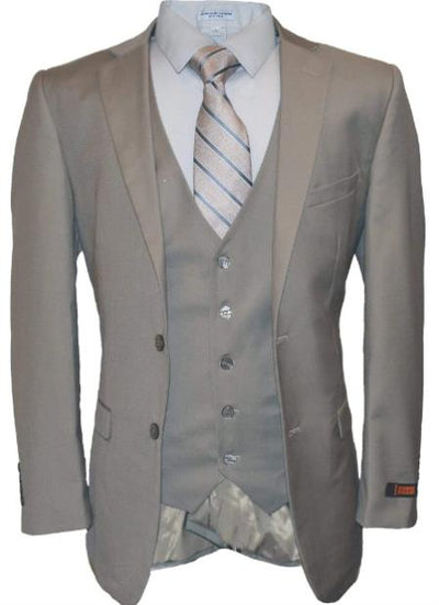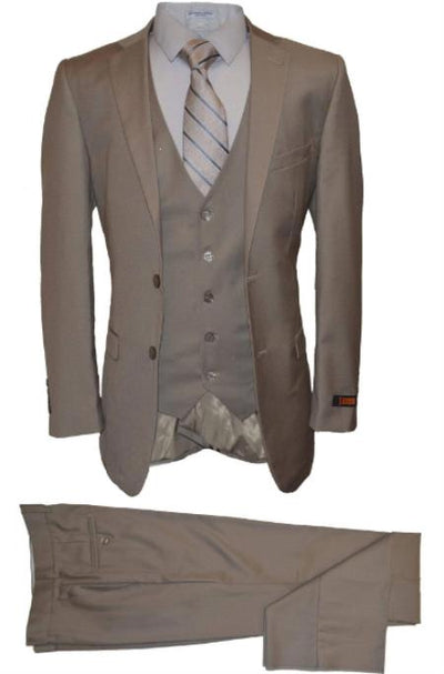 2 Button Notch Lapel Single Breasted Modern Fit Suits Double Vented One Chest Pocket Two Flap Front Pockets Color: Taupe SKU#JA56333