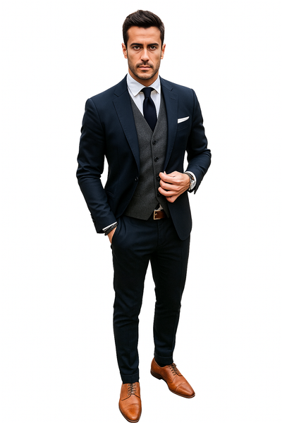 View full detailsWool Super 150’s One Button 3-Piece Suit – Wide Lapel | Single-Breasted Vest | 1 Pleat Pant 👔✨ Step into timeless elegance and modern sophisticatio...