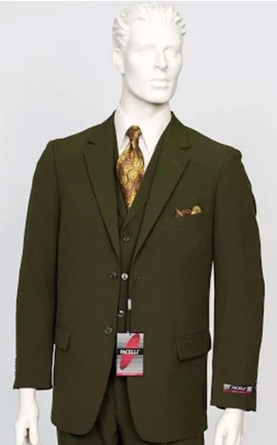 6 Button Peak Lapel Double Breasted One Chest Pocket Two Flap Front Pocket Belt Loops Fully Lined Classic Fit Color: Olive Green SKU#JA54942