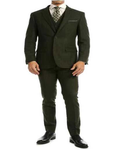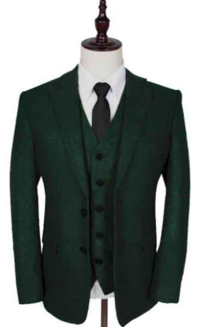 Tweed 3 Piece Suit - Tweed Wedding Suit Hunter Green Super Slim Fit Peak Blinder Custom Vested Suit Fit: men's Slim Suit No Pleated Pants European ...