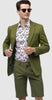 Single Breasted 2 Button Notch Lapel One Chest Pocket Flap Front Pockets Classic Fit Non Pleated Front Pants Color: Apple Green ~ Lime