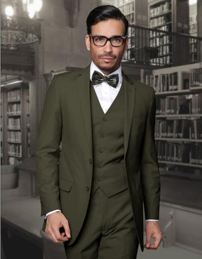 View full detailsMens 2 Button Vested Dark Green Suit with Pleated Trousers Regular yet refined design in supple green color. Features breathtaking blazer with sui...