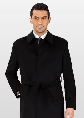 View full detailsmen's Cashmere Blended Top Coat. Single 4 Button 48 Inch Full Length Coat. Coat is Solid in Color with Hidden Button Design and Belt. 20% Vis...