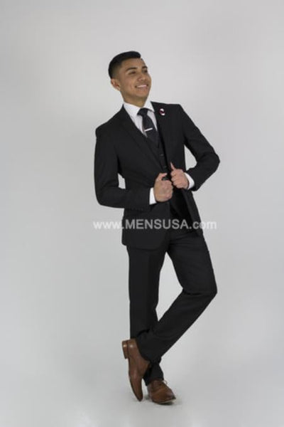 2 Button Notch Lapel Slim Fit Suit Vent And Slim Fit Pants Color: Black SKU#SM120