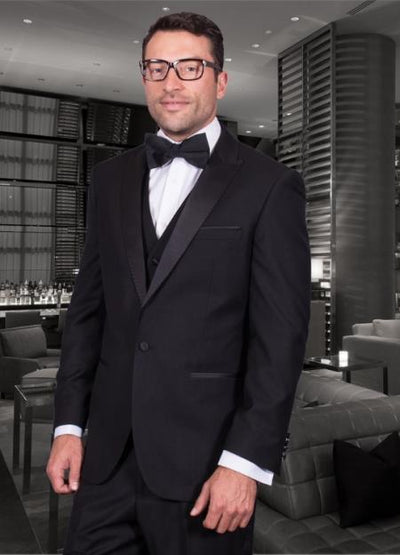 1 Button Peak Lapel Single Breasted Besom Chest Pocket Besom Pocket Color: Black